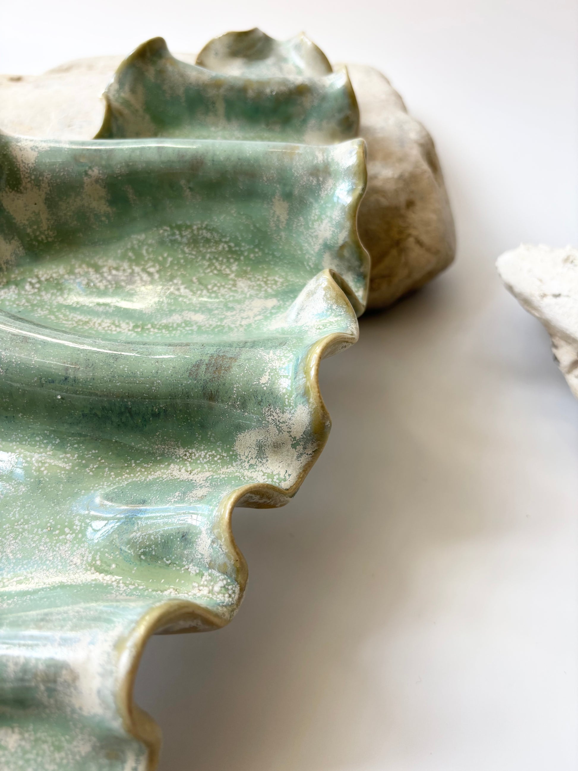 Vær venligst opmærksom på, at min keramik først og fremmest er dekorativ og skabt som skulpturelle værker – derfor er de som udgangspunkt ikke vandtætte og egner sig ikke til brug med vand. De egner sig som udgangspunkt heller ikke til brug med fødevarer, da glasurerne ikke nødvendigvis er godkendt hertil. Dette gælder medmindre andet er angivet i produktbeskrivelsen. Små ujævnheder, glasurbobler mm. betragtes desuden ikke som fejl, men som en del af det kunstneriske udtryk.