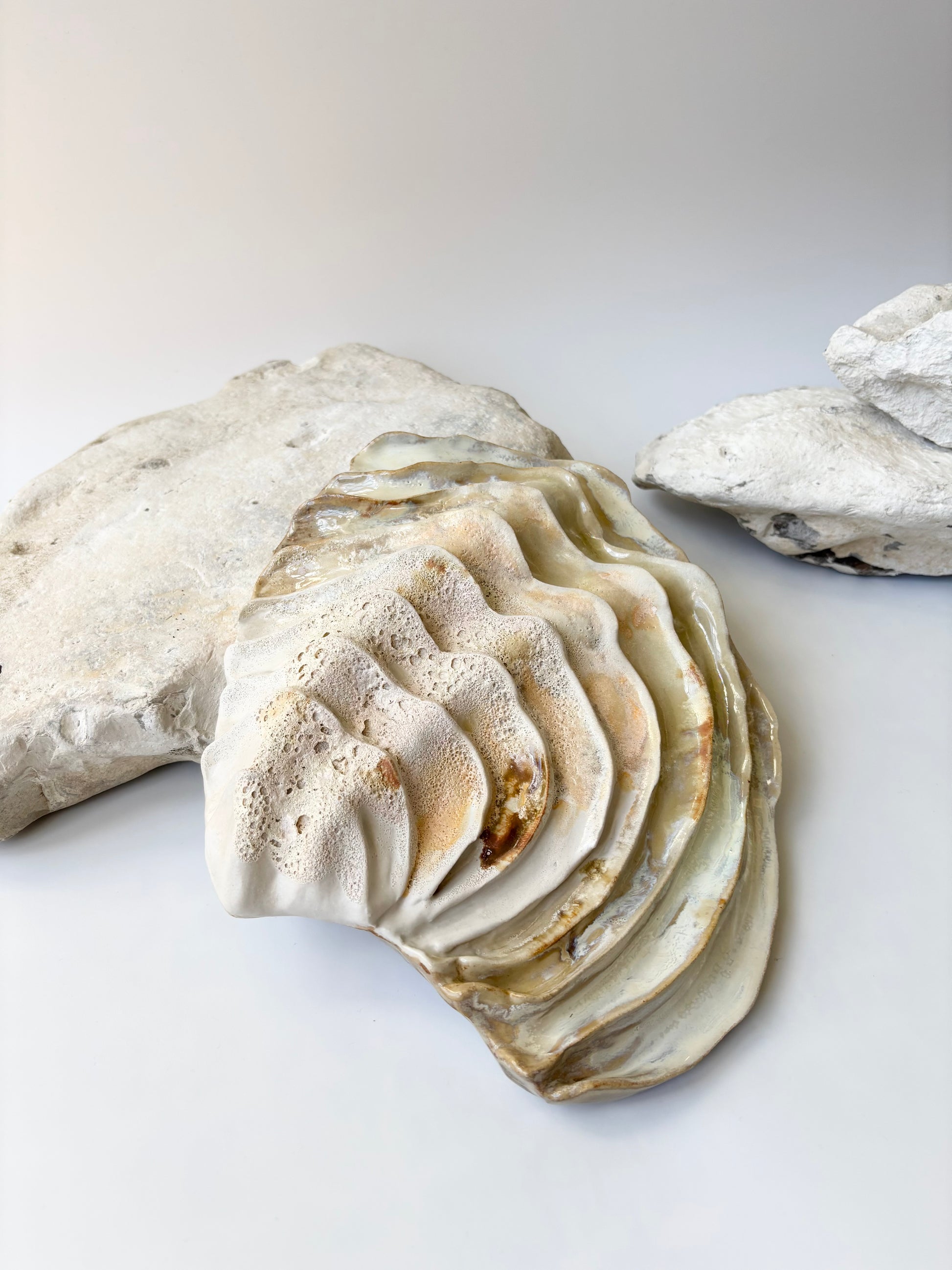 Beskrivelse: Vægophæng inspireret af venusmuslingens (helt specifikt arten Circomphalus) smukke organiske form og linjer.